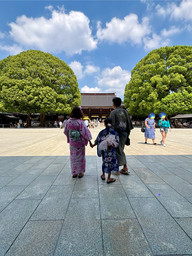 We entered the shrine. I saw some people in Kimonos and some in modern clothing.